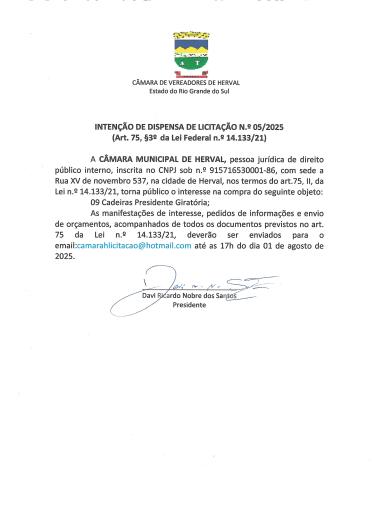 INTENÇÃO DE DISPENSA 005/2026